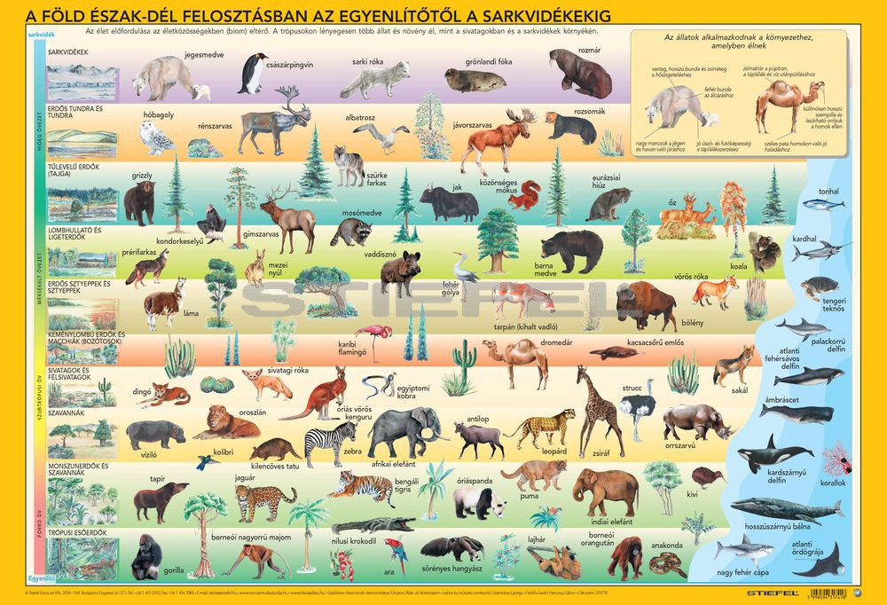 A Föld állat- és növényvilága című könyöklőnk élethű, művészi pontossággal készült, egyedi rajzokkal mutatja be földünk állatvilágát, ügyesen egyensúlyozva a jól ismert fajok és a különlegességek felvonultatása között. Az állatrajzokat egy hiteles, jól használható világtérképen helyeztük el, amely egyszersmind bemutatja Földünk „övezetességeit” is – a tundrákat, tajgákat, sivatagokat és a többit –, azaz az éghajlati sajátosságok alapján kialakult növénytakarót, és az ezekből következő sajátos ökoszisztémát. Így könyöklőt nézegetve, akár gyermek, akár felnőtt felhasználóról is legyen szó, a biológia- vagy földrajzórán elhangzó, elsőre homályosnak tűnő fogalmak is egyből világossá válnak. A termék alján látható, élőhelyenkénti jellegzetes kis fényképek szintén a jobb megértést szolgálják. A könyöklő hátoldalán, a még jobb tisztánlátás végett, világtérkép nélkül, nagyobb méretben, az égövek szerint sorba rakva láthatjuk az előoldalon szerepeltetett állatrajzokat.